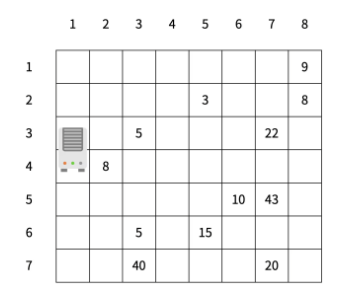 미세먼지를 제거하기 위해 구사과는 공기청정기를 설치하려고 한다. 공기청정기의 성능을 테스트하기 위해 구사과는 집을 크기가 R×C인 격자판으로 나타냈고, 1×1 크기의 칸으로 나눴다. 구사과는 뛰어난 코딩 실력을 이용해 각 칸 (r, c)에 있는 미세먼지의 양을 실시간으로 모니터링하는 시스템을 개발했다. (r, c)는 r행 c열을 의미한다.