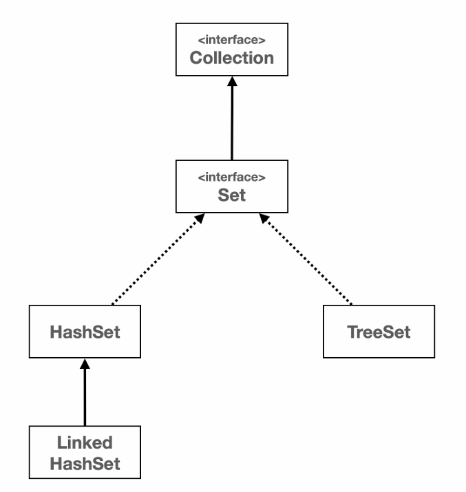 자바는 다양한 상황에 맞게 선택할 수 있도록 여러 종류의 Set 구현체를 제공한다. 각 구현체는 내부 구조와 동작 방식이 다르며, 사용 목적에 따라 성능과 기능 면에서 차이를 보인다. 주로 사용되는 Set 구현체는 HashSet, LinkedHashSet, TreeSet의 세 가지이다.